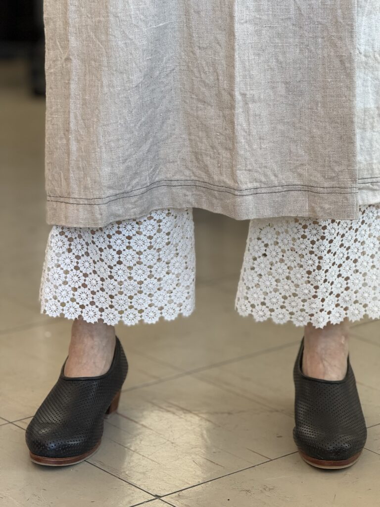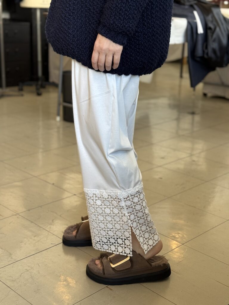ペチパンツはのぞかせてもいい感じで作っています。スタッフみんなに試着してもらっての感想はすごく履き心地が良い!とのこと。