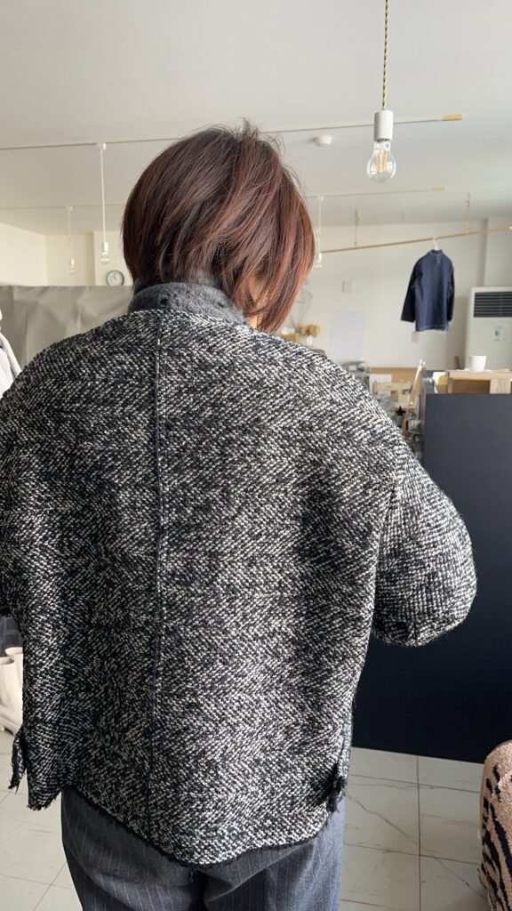 このジャケットの生地で、タイトスカートも良いですね。