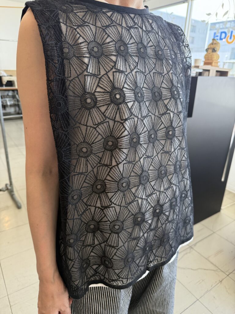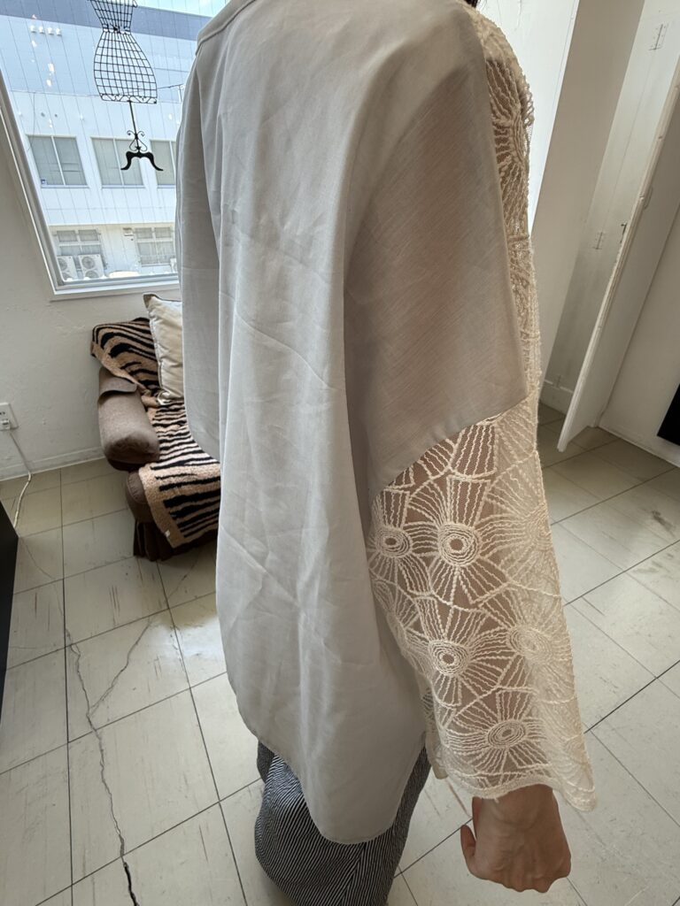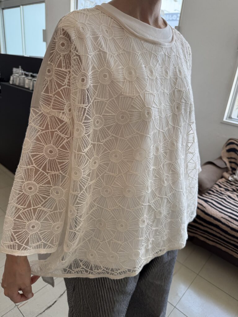 懐かしいレースの生地のカミシモトップスも出来上がってきました。