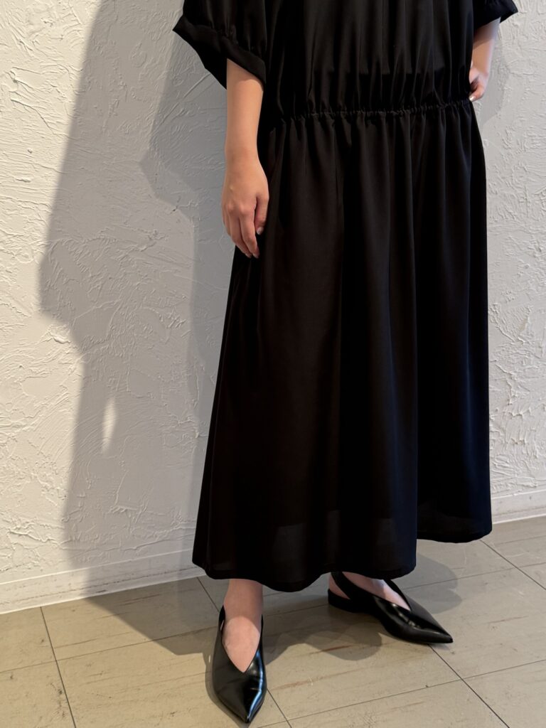 ウエストをしっかりマークするのか、緩めにするのかで表情が変わります。