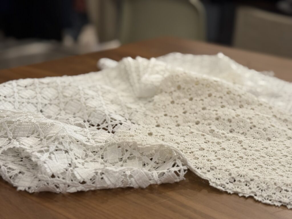 裾の部分にこのレースを使って、身ごろの部分は吸汗、冷感、伸縮素材を使ったものに。お色は白、黒、ネイビーの予定です。