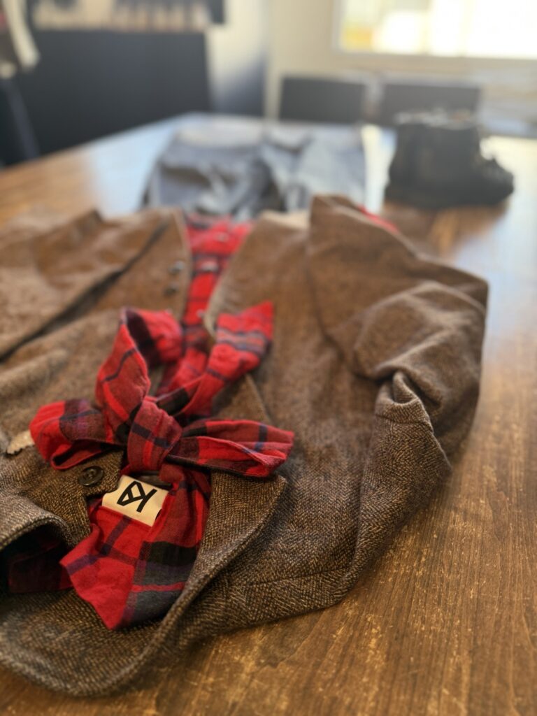 申し訳ありませんが米田、綿ツイードのブルー系と茶系、2色買いしました。