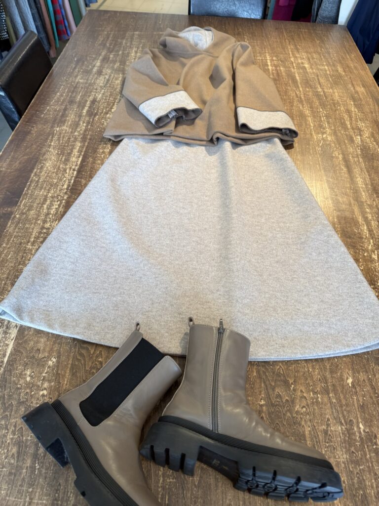 wool以上という名の生地ですが、写真のAラインスカートの生地のお色を追加しました。3度目です。