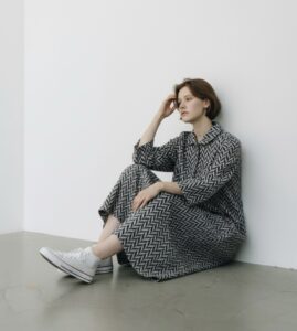 今週末金曜日に入荷予定のこの生地のワンピースです。