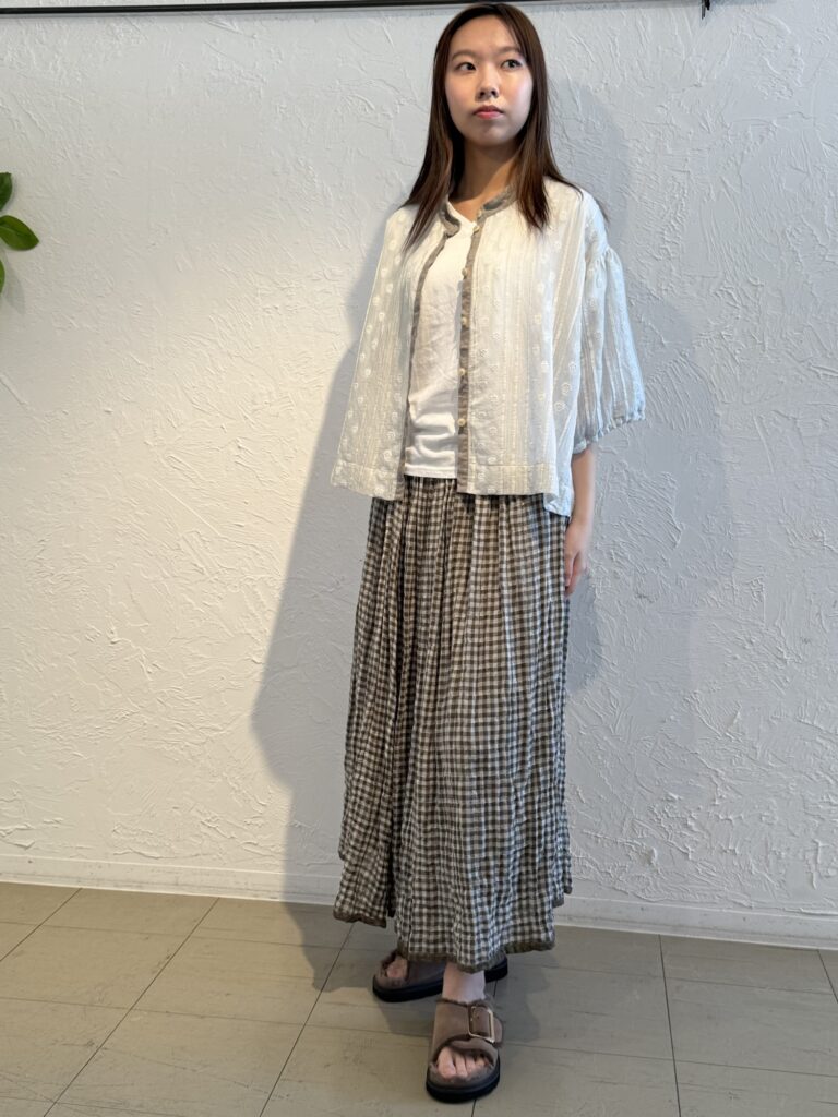 涼しげなコーデはいかがでしょうか。