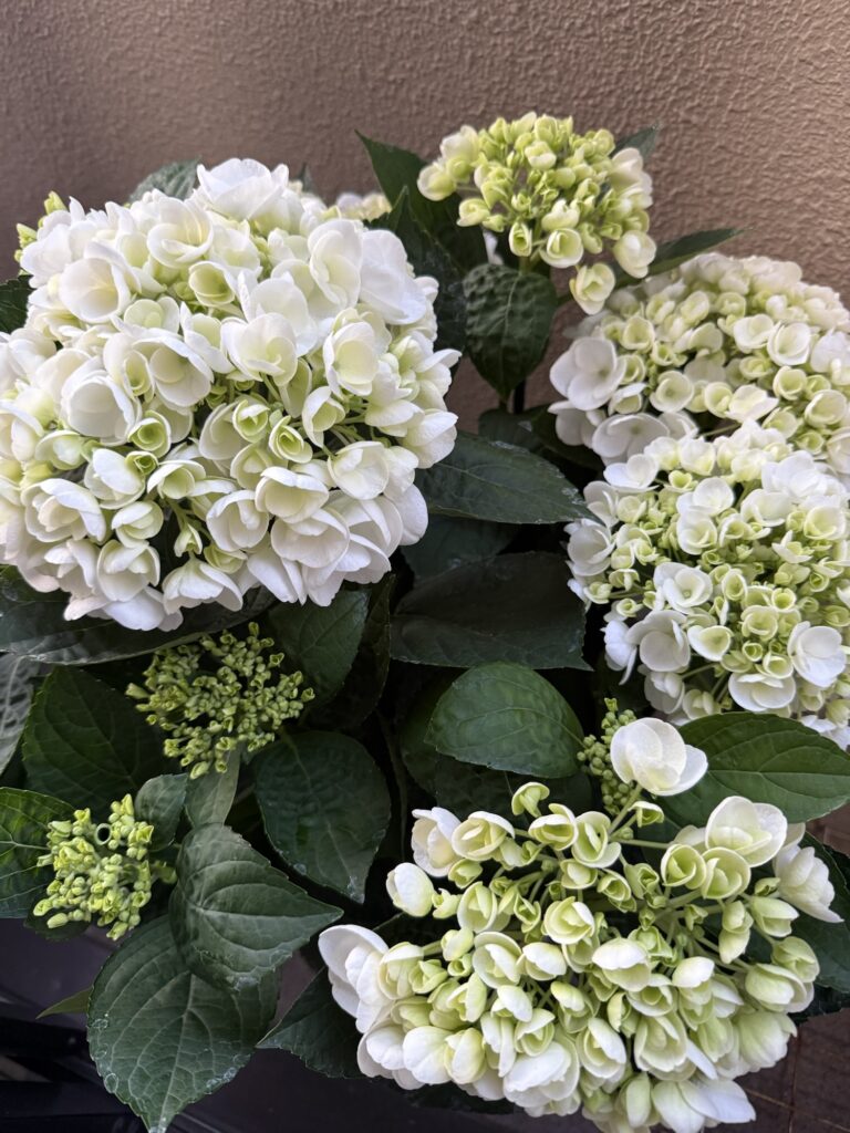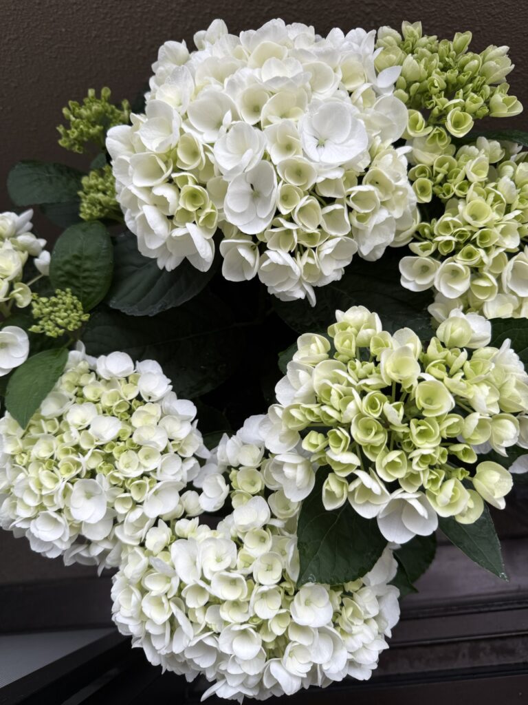 やっぱり白が好きなので、白い紫陽花にいたしました。