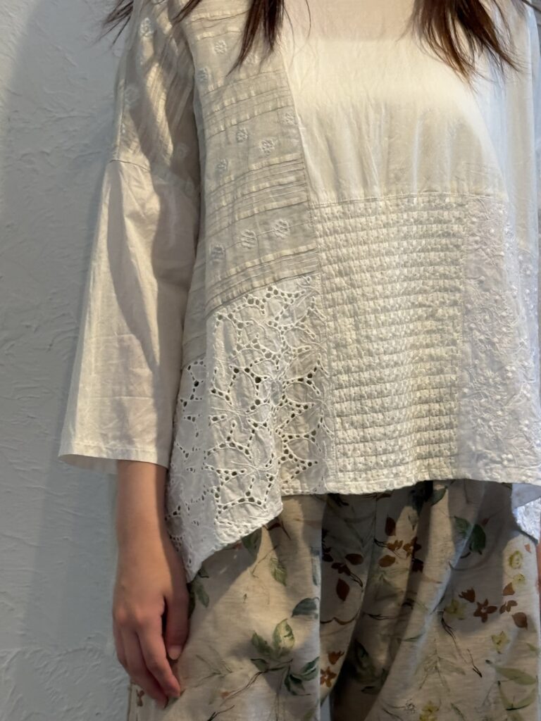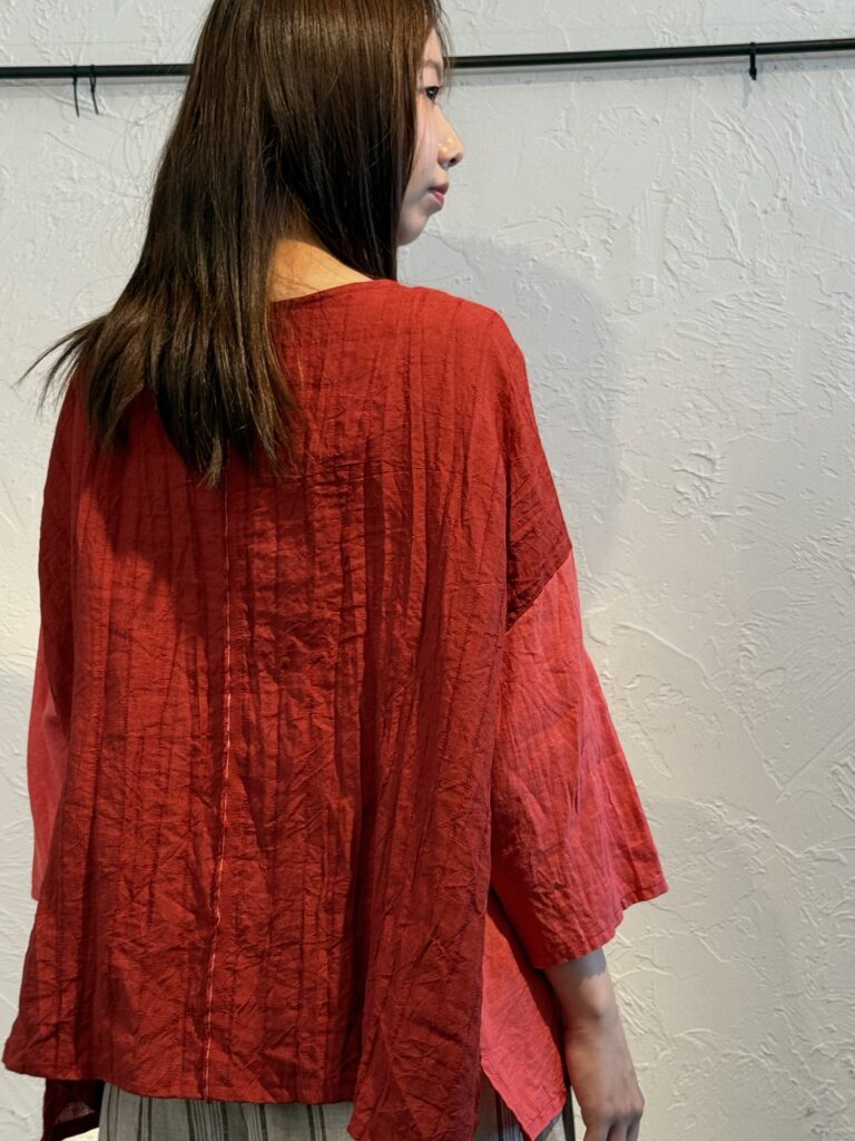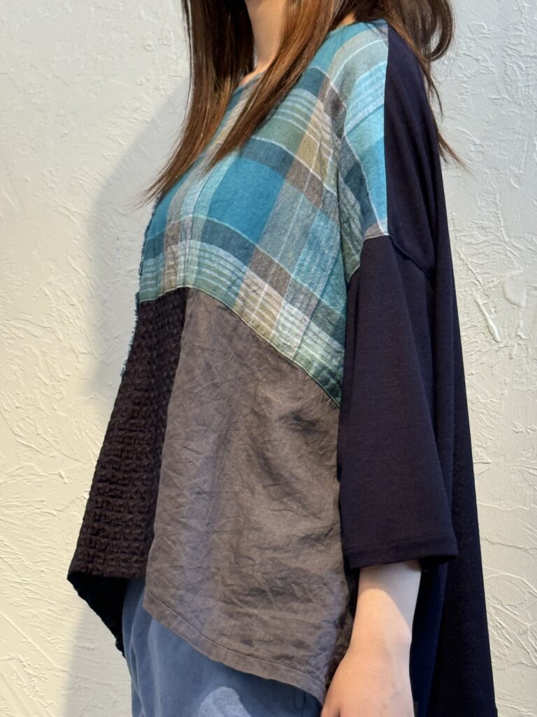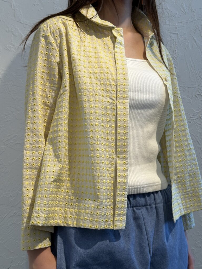 こちらは前開きのブラウスですが、裾をまっすぐに仕上げていますので、ジャケットととしても良いですね♪