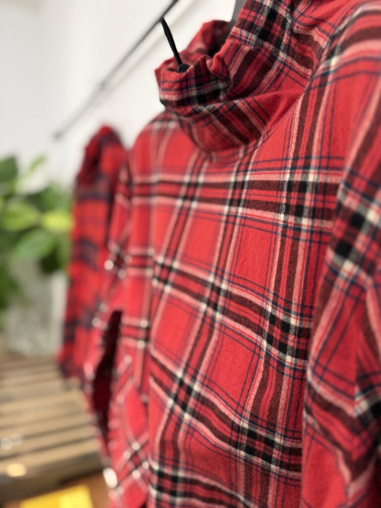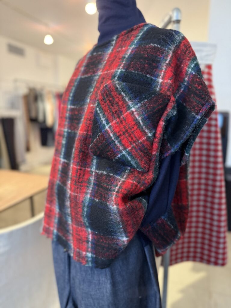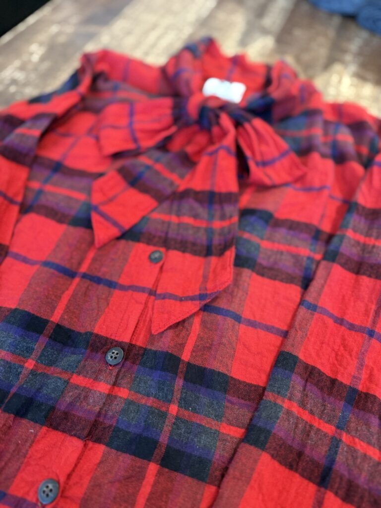この赤いチェックの生地たちはデニムとに相性がすごくいいです。
