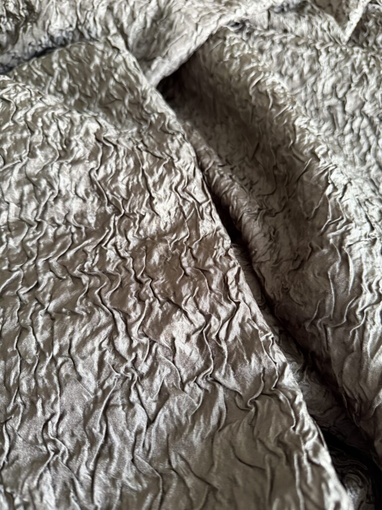 インタックフレアパンツのシャカシャカ生地。